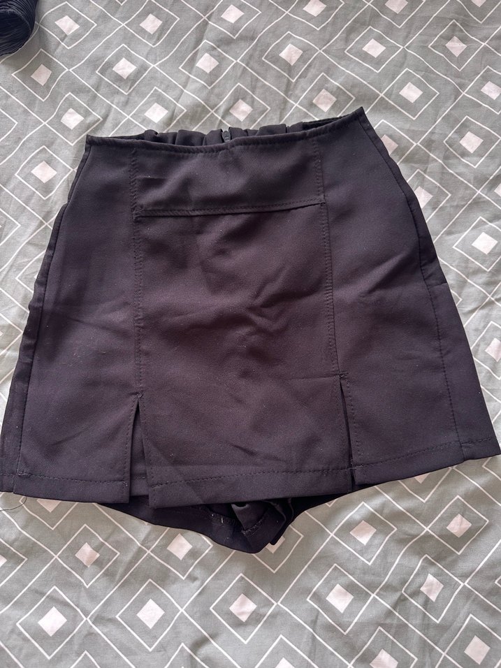 Dar kesim siyah mini etek, pilili detaylara sahip, sentetik kumaştan üretilmiştir. Günlük kullanım için uygun, minimalist goth tarzında. Sorunsuz bi kaç kere giyildi