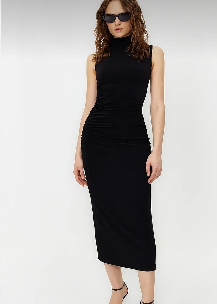 Trendyolmilla Siyah Sıfır Kol Drapeli Esnek Elbise
