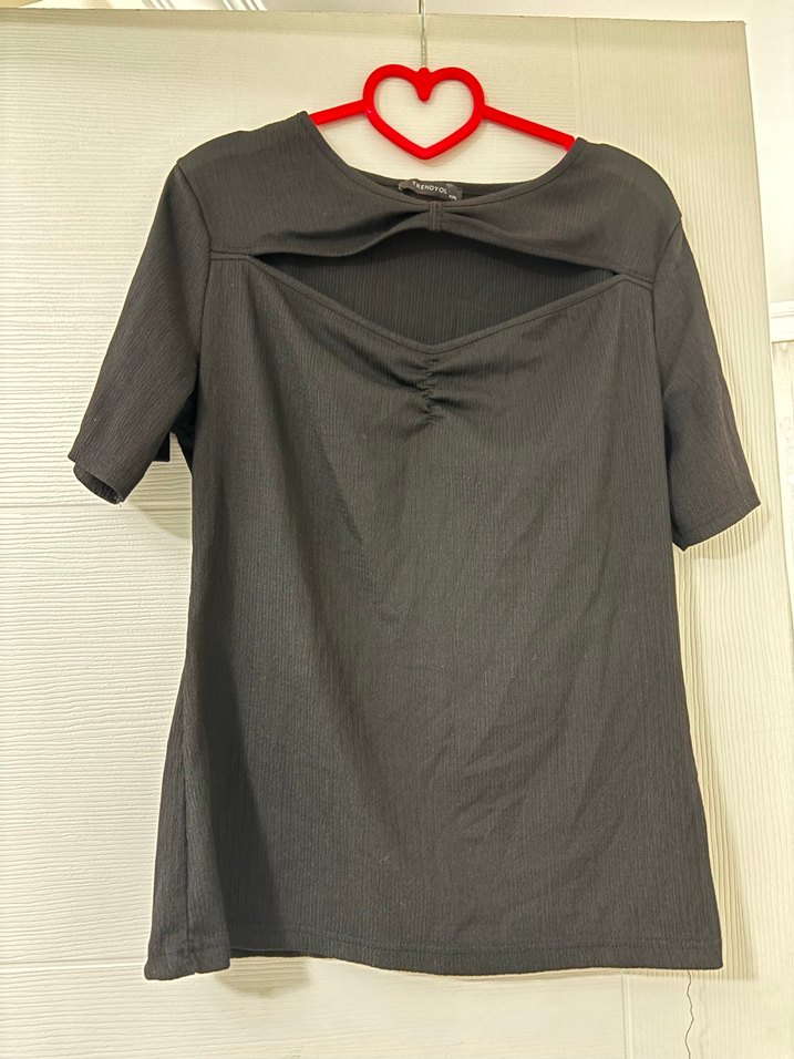 Trendyolmilla Siyah V Yaka Kısa Kollu bluz