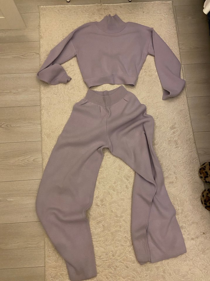 Lila renginde triko takım arkası bağlamalı