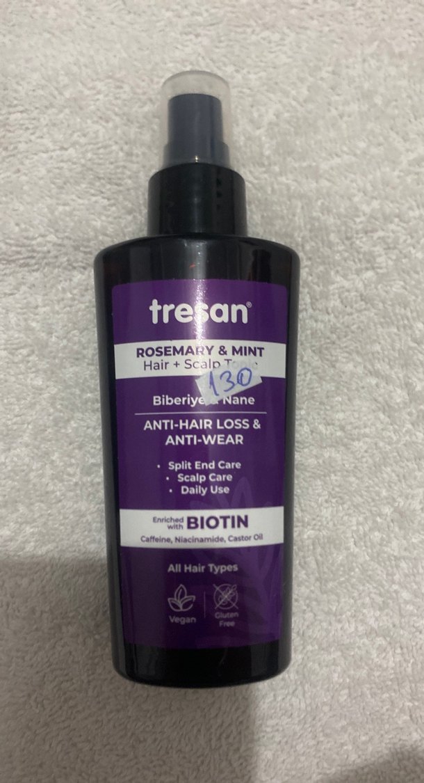 Tresan Biberiye & Nane saç ve saç derisi spreyi, biotin ile zenginleştirilmiş, saç dökülmesini önler, kırık uç bakımına ve saç derisi sağlığına destek olur. Tüm saç tipleri için uygundur.
