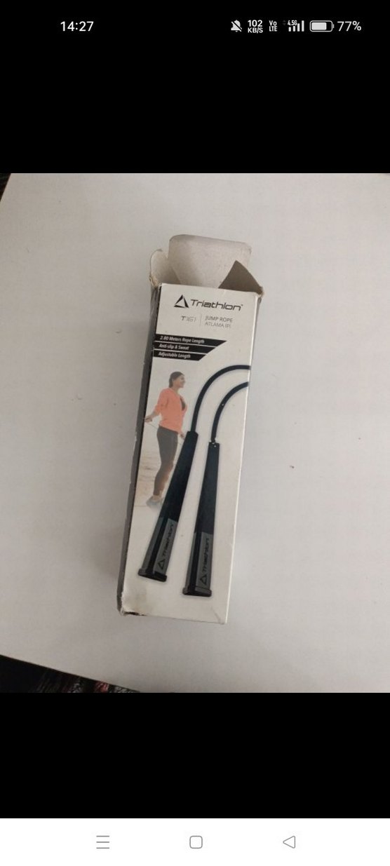 Triathlon markalı, siyah renkli ve baskılı saplara sahip atlma ipi, egzersiz için uygundur. ️
