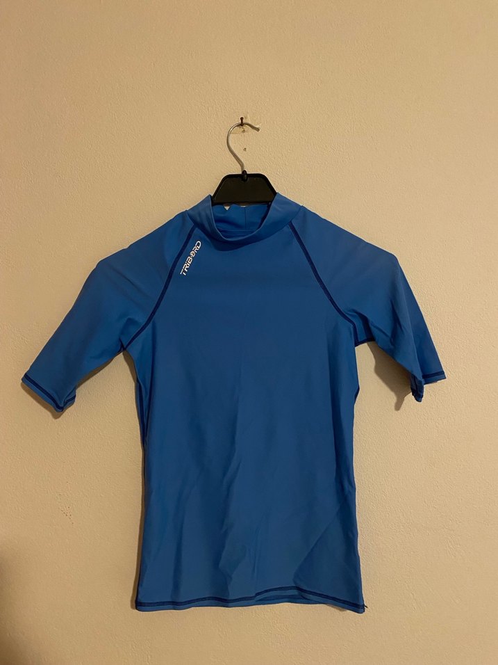 Tribord kısa kollu Likra. Hiç kullanılmadı. Herhangi bir yıpranması ve problemi yok.