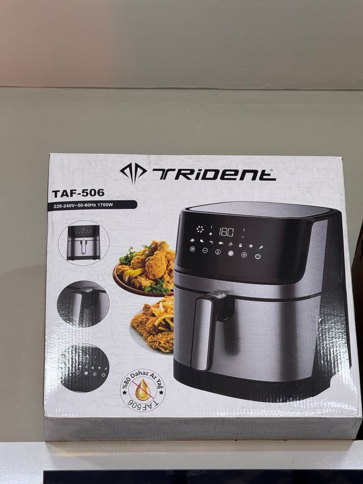 Trident TAF-506, 1700W güçte gri dijital fritöz. Dokunmatik panel ve geniş kapasite sepeti ile sağlıklı pişirme sağlar.