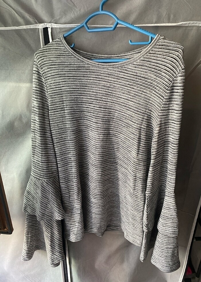 Az kullanılmış. Kollarının az dekoltesi var Dirsekten aşağıya doğru yarasa kollu