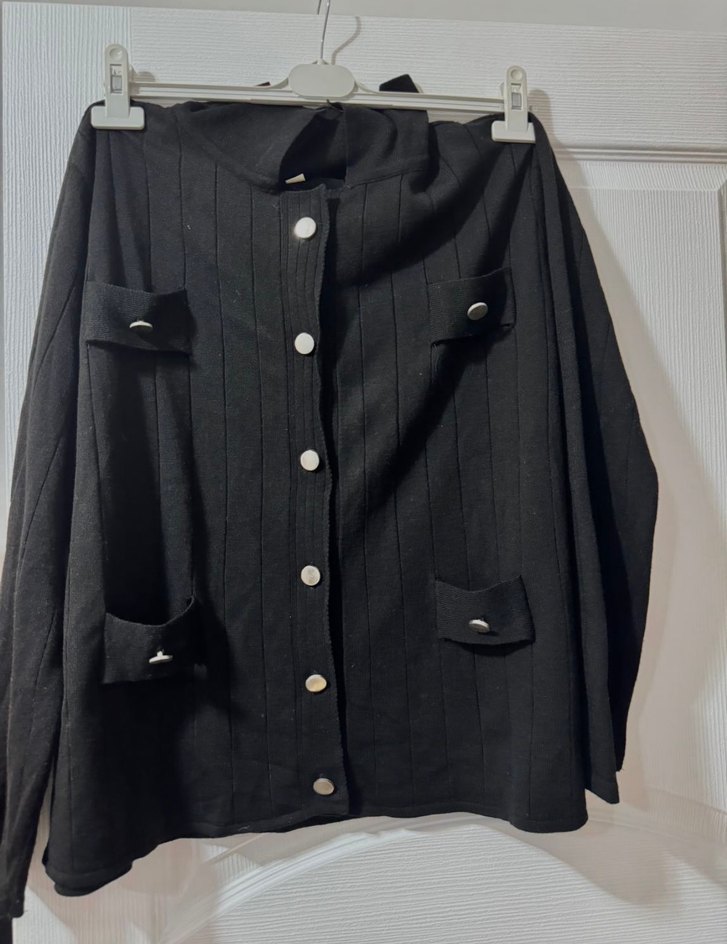 Triko ceket Düğmeli Siyah Kadın Ceket
