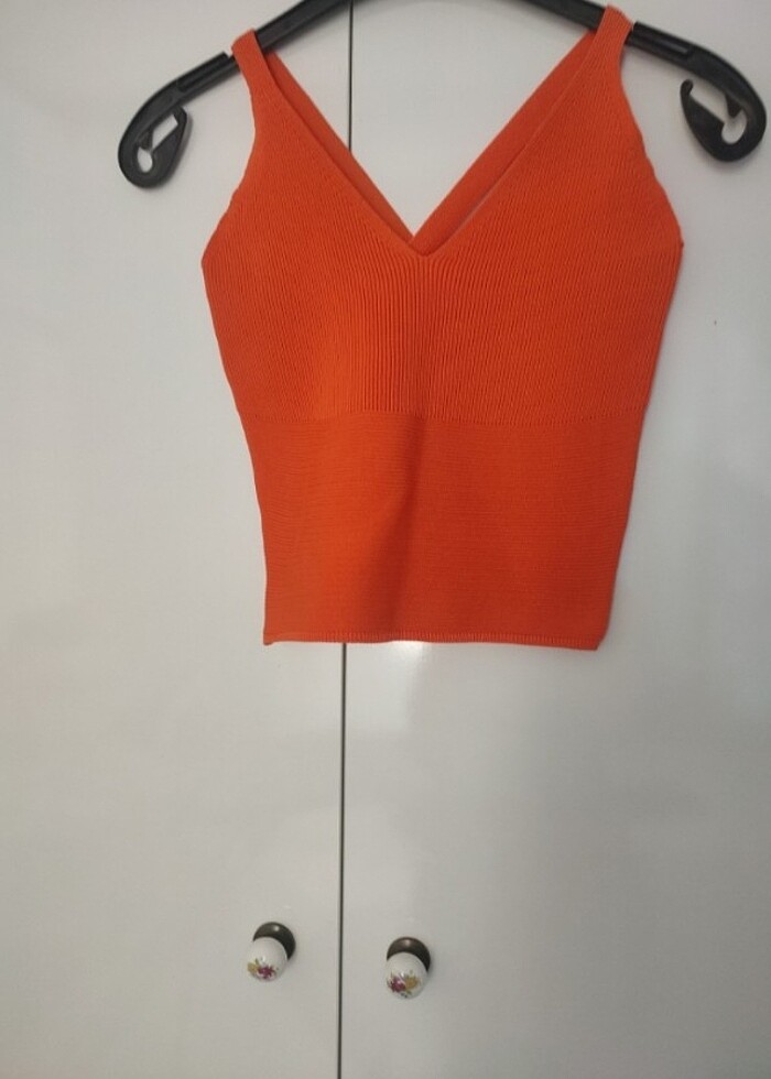 Turuncu renk triko sırtı çapraz crop