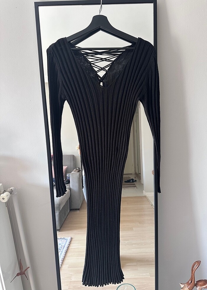 Triko saran bir yapısı var sırt kısmında iplikler mevcut v yaka çok şık elbise ihtiyaç fazlalığından satılıktır