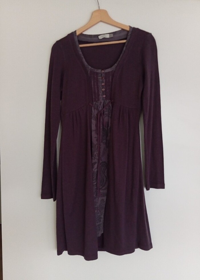 Ön kısmı kumaş yanları ve arkası triko mor renkli elbise iyi durumdadır boyu diz üstüdür