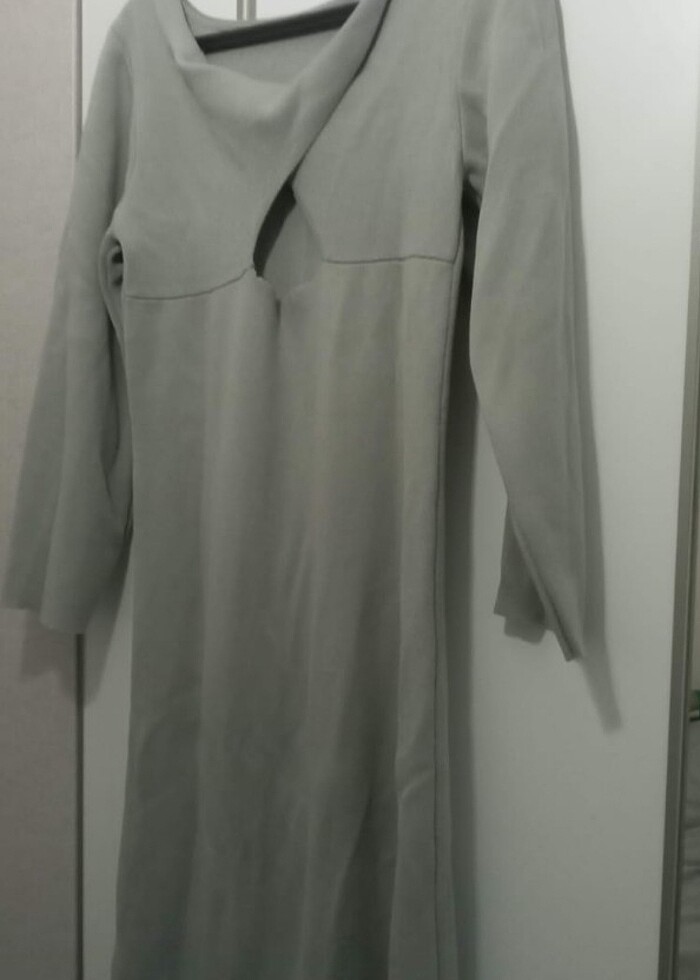 XL 42 beden triko kalem elbise gri renk sırt detay