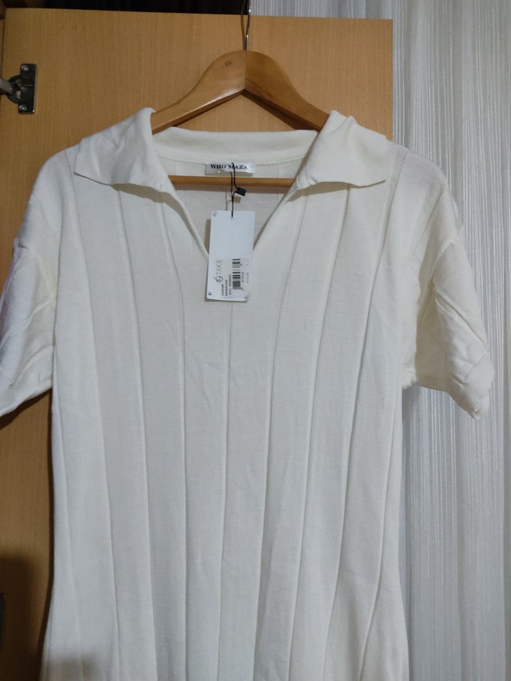 Beyaz yırtmaçlı triko elbise.Yeni,etiketlidir