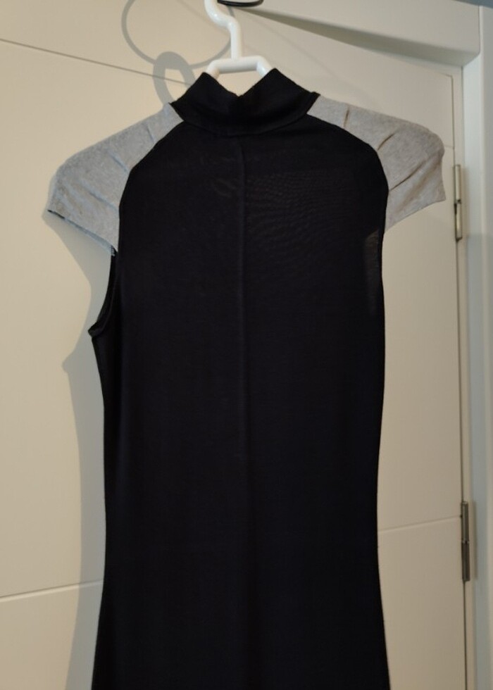 Triko Siyah Gri Detaylı Kısa Kollu Mİni Elbise