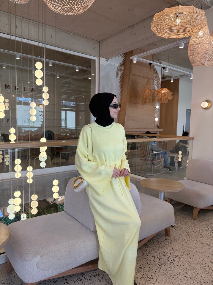 Triko elbise sarı