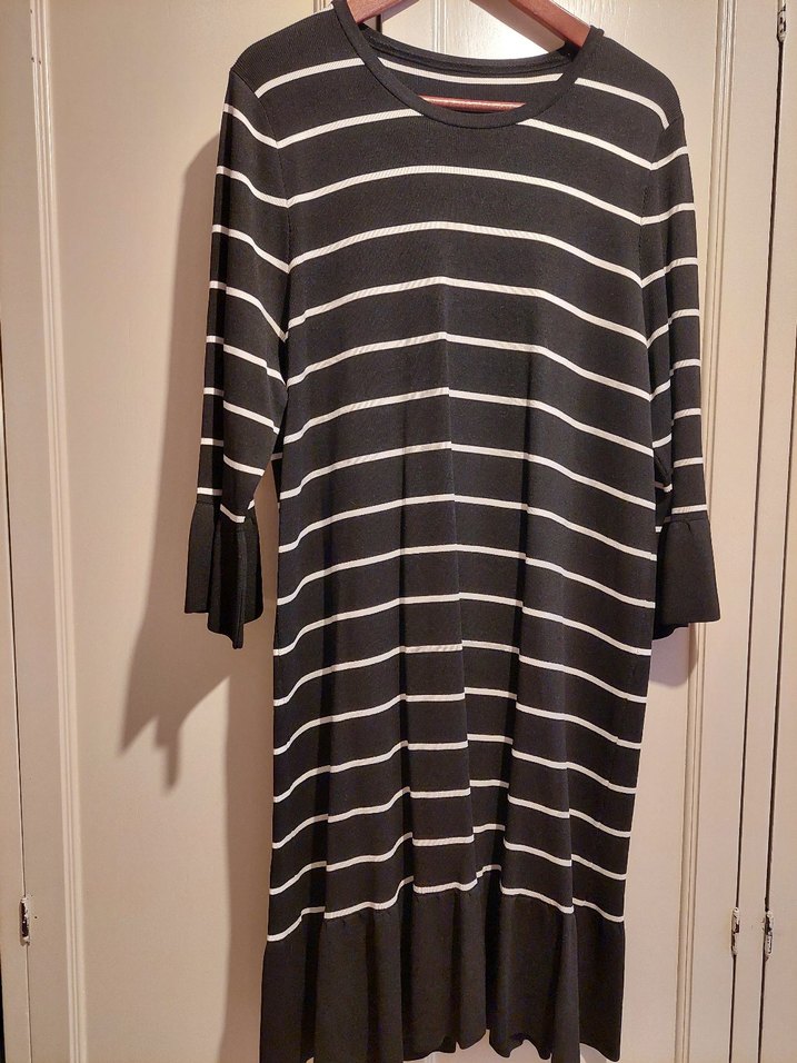 Ürün sıfır bir mağazadan aldım trikosu modeli harika sorunsuz yarım kol çok tatlış bir elbise tertemiz torbasinda muhafaza edildi kaçık tuylenme ,yırtık hiçbir sorunu yoktur. iade almiyorum triko ürün olduğu için siyah beyaz hiçbir zaman modası geçmeyecek ürün hediye alinabilinir kolları firfir yarım kol gibi etek uçları da biraz büzgulu gibi çok rahat kiloları da kapatan bir modeldir.ürün OLCULERI 42 BEDEN ICIN ALINDI DENENDI TAM KALIP 44 BEDENE DE OLUR .KOLTUK ALTINDAN 54 CM BOYU 104 CM DIR USTTEN TAM OTURUYOR ASAGI DOĞRU BIRAZ GENISLEYEN COK GUZEL COK SIK BIR URUN MARKA TEMSİLİDİR MARKASI ZARA DEGILDIR