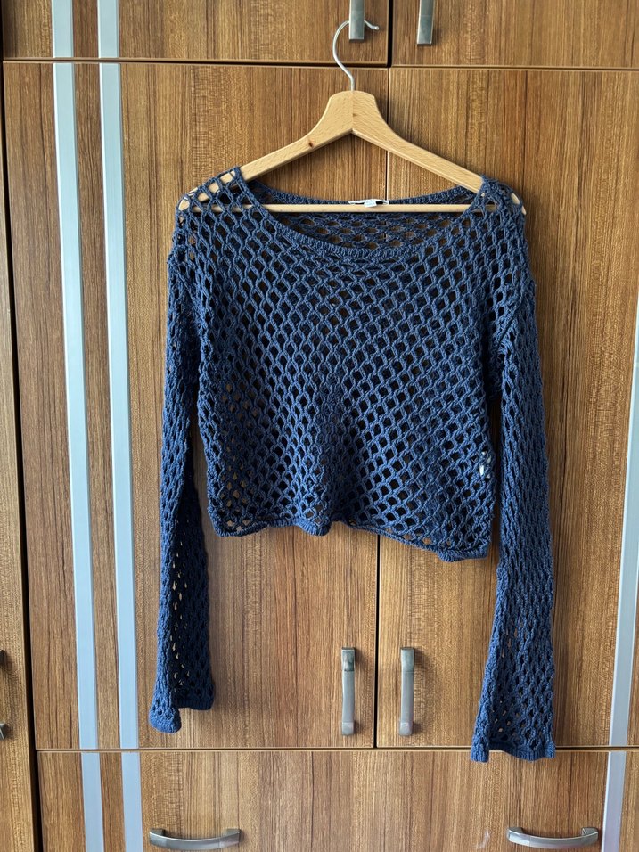 triko fileli delikli lacivert kazak