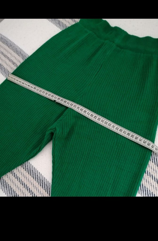 Örgü kumaştan üretilmiş, midi boy ve yeşil renkli kadın pantolonu. Esnektir. Ürün hiç kullanılmamıştır. S bedendir. Ölçüler fotoğrafta eklidir.