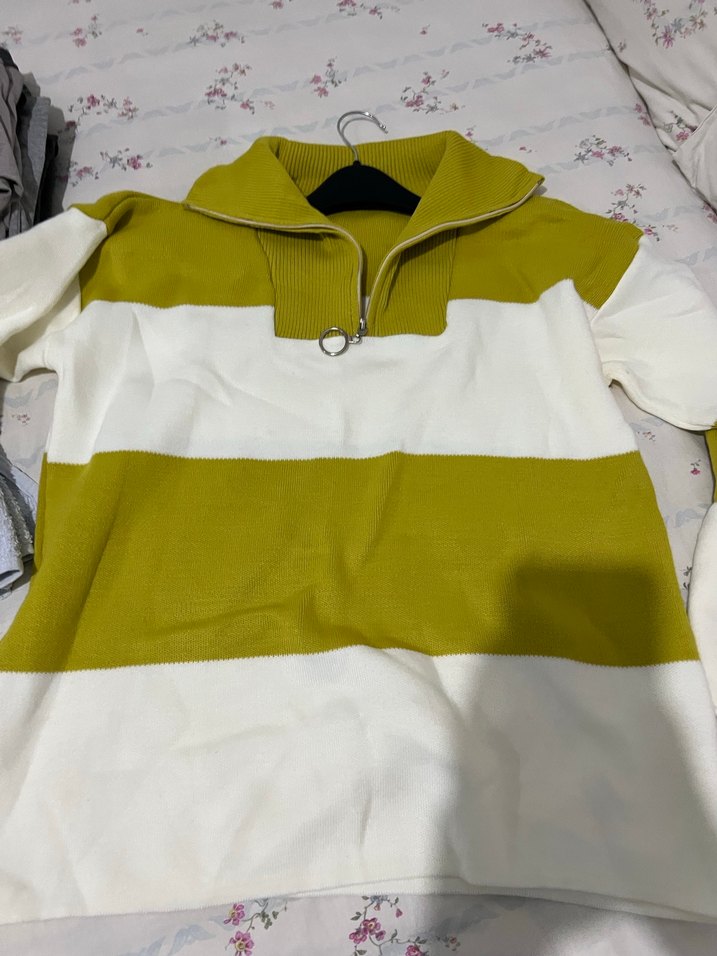 Yeşil beyaz triko bir kez giyildi yepyeni