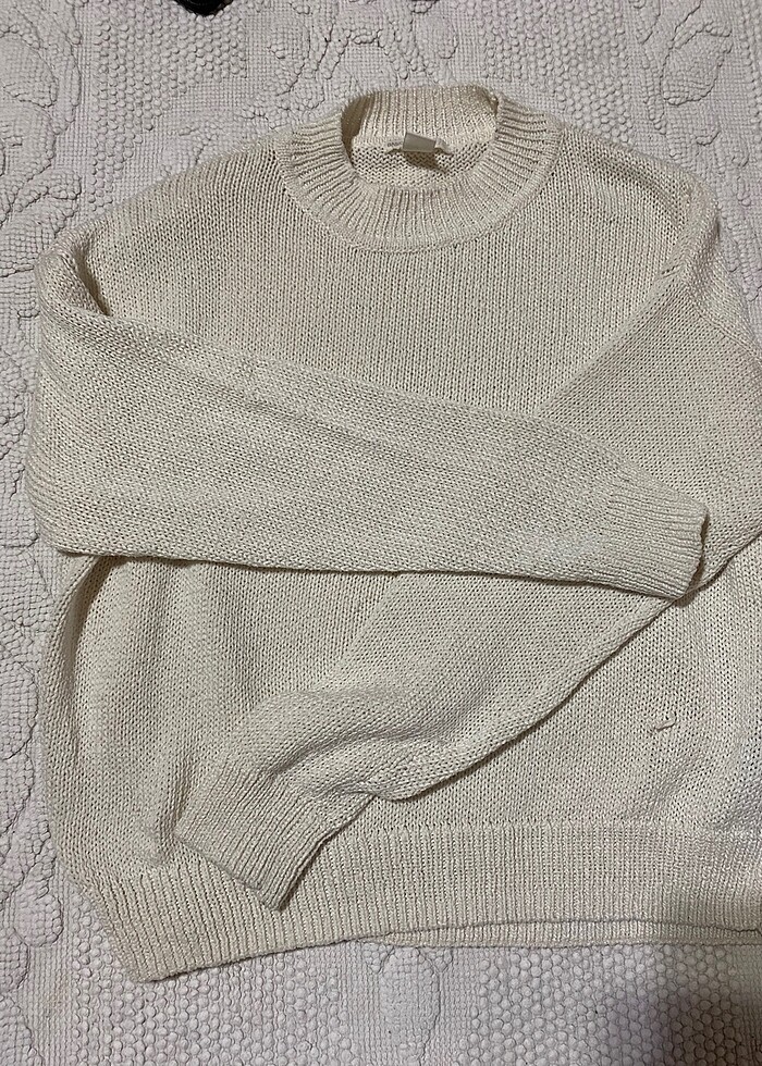 Bisiklet yaka ekru hm marka. Kumaşını dokusunu çok seviyorum ben ama küçük bi ilmek kaçması var son fotoda ekli. Uğraşmak istemedim kullanabilirim yada düzeltebilirim derseniz uygun fiyata ekledim.