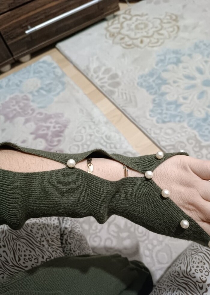 V yaka olup kolları incilidir triko kazaktır