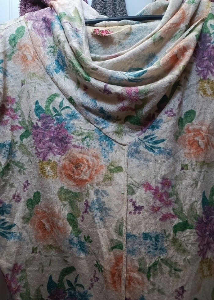 Triko çiçekli kazak degaje yaka