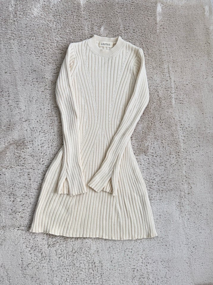 Triko kısa elbise - Krem