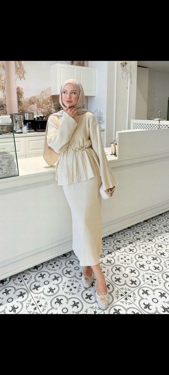 krem ve pembe renkte kısa kollu hırkalı triko takım. Ürün rahat kaliptir. klasik ve zarif bir tercih.