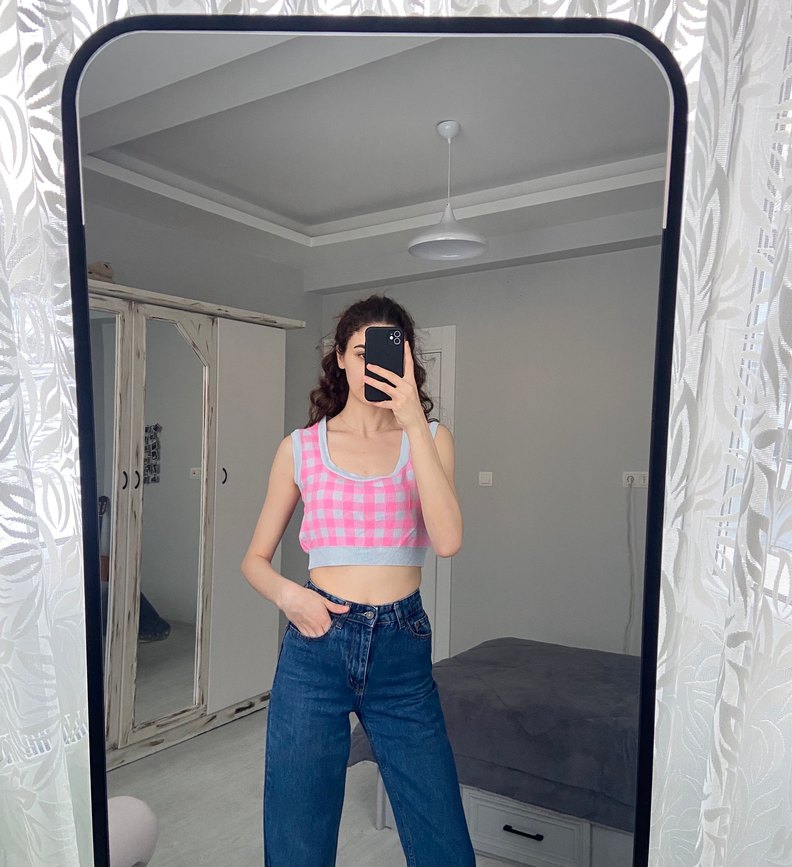 Ütüsüz olduğu için kırışık biraz. Aslında çok tatlı ama ben crop giymiyorum
