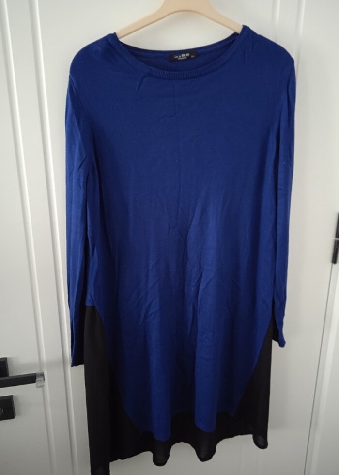 Lcwaikiki ürünüdür temiz kullanılmıştır mavi yerleri triko siyah olan yerleri kumaştır onu biraz kısa arka uzun asimetrik yapısından dhaa yazık gösteriyor bedeni olmadığı için satılıktır ön boyu 86 cm arka boyu 96 cm iki kol arası esnetilmeden 56 cm dir esnek trikodur ölçülere göre alım yapınız iademiz yoktur