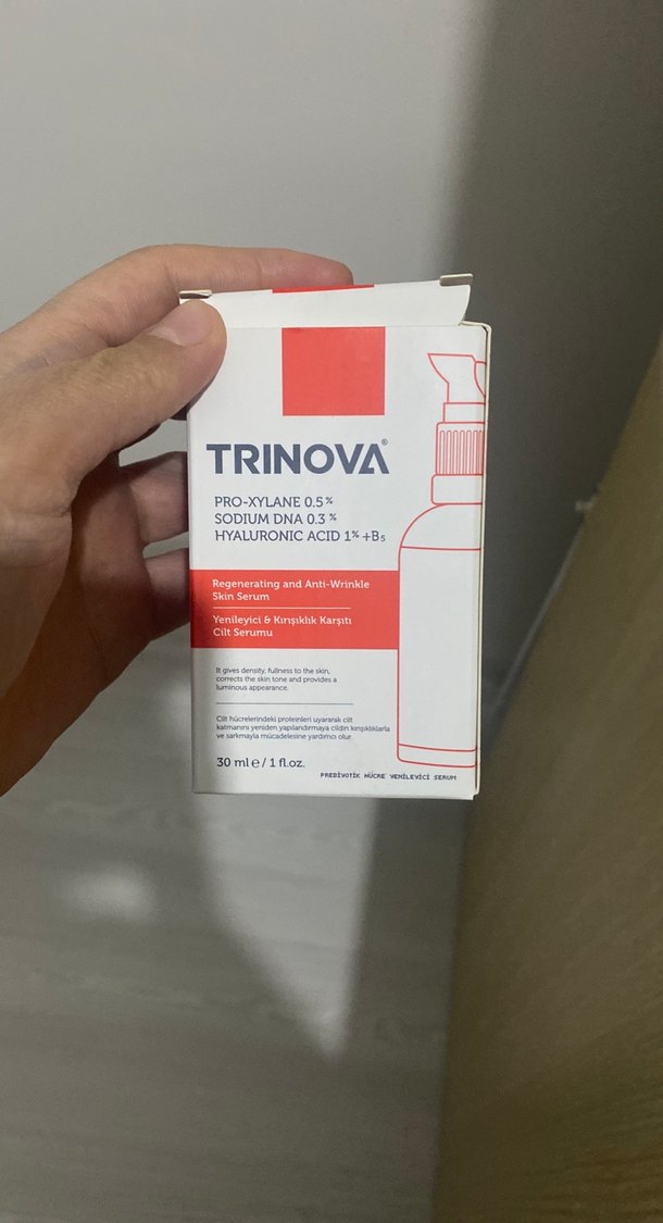 Trinova cilt serumu Pro-Xylane, Sodyum DNA ve Hyaluronik Asit içerir. Cildi yeniler, kırışıklıkları azaltır ve cilt dokusunu iyileştirir. ✨