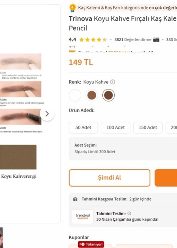 Trinova Koyu Kahve Fırçalı Kaş Kalemi Double-ended Eyebrow Pencil