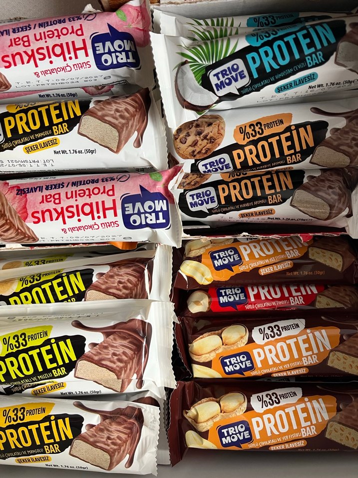 Tanesi 25 tl. 10 tane ve üstünde alana 20 tl üzerinden satabilirim. Yorumlarda hangi aromalı istediğinizi yazarsanız ona göre ilan açacağım. Antep fıstıklı kalmadı. Trio Move protein bar %33 protein içerir ve çikolata ile fıstık gibi çeşitli tatlarda sunulur. Her bar 35 gramdır ve yüksek protein sağlar.