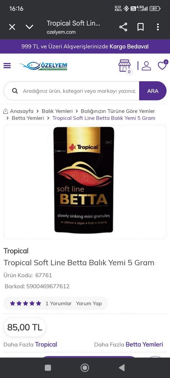 Tropical Soft Line Betta Balık Yemi 5 Gram