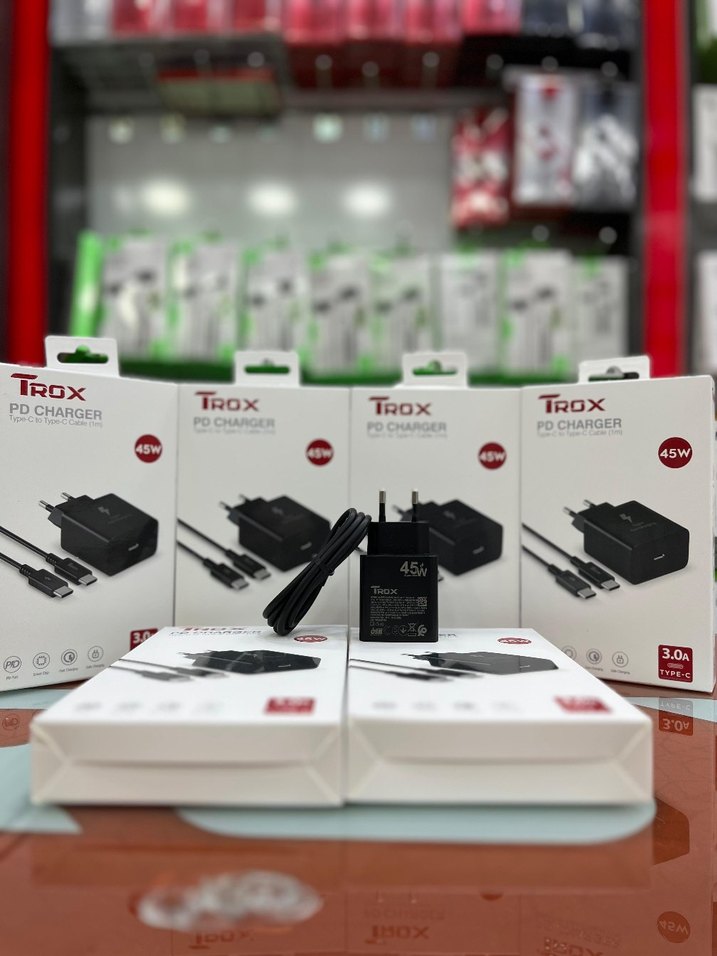 2 YIL GARANTİLİ ÜRÜN ‼️ Trox 45W siyah hızlı telefon şarj cihazı, USB Type-C kablo ile birlikte gelir ve 45 watt güç çıkışıyla hızlı şarj destekler. ⚡