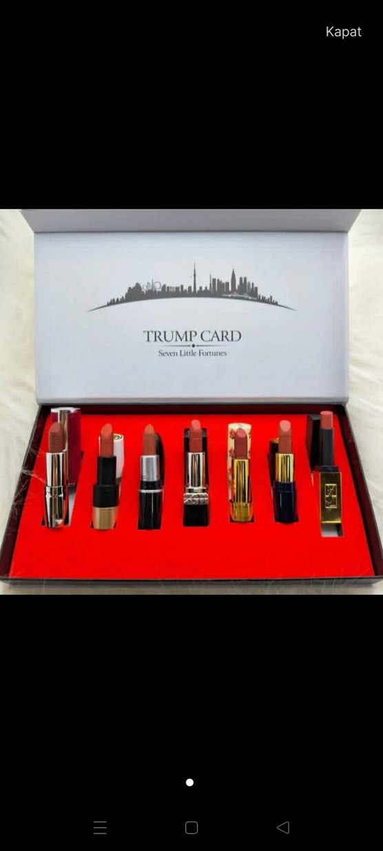 Trump Card markalı, koyu kırmızı renk tonlarında yedi farklı rujun yer aldığı set.