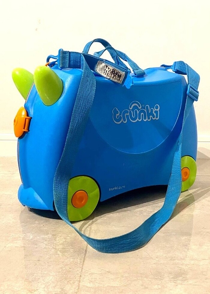 Orijinal Trunki valiz modeli. Çocuk bavulun üzerine binebilir. Çocuğum 6 yaşına kadar ona bindi. İçinden çıkan askısı kullanılarak üzerine oturan çocukla birlikte yetişkinler tarafından çekilebilir. Bavulun iki tarafında yer alan kilitler bavulun kolay ve sağlam bir şekilde kapanmasını sağlar. Ölçüler: 46*31*21.5cm Yaş grubu 3+