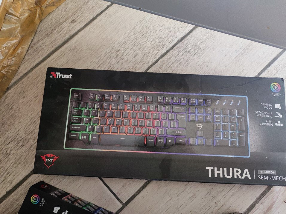 Tüm tuşlarda canlı LED ışıklandırmaya sahip çok renkli koyu renkli kablolu klavye. Sayısal tuş takımıyla standart düzen içerir. Düşük ışıkta kullanım için uygun.