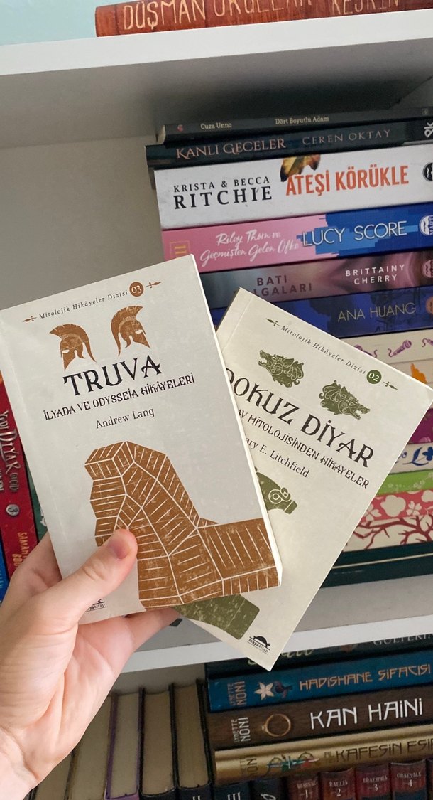 Andrew Lang'in İlyada ve Odysseia hikayelerini içeren "Truva" ve mitolojik hikayelerden oluşan "Okuz Diyar" kitapları.