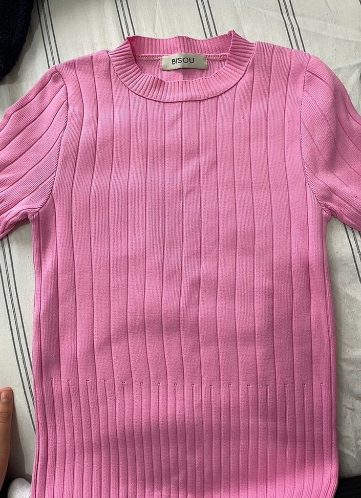 Pembe renkte, bisou markalı, ince triko kumaştan, sadece bir defa giyildi sıfırdan farksız