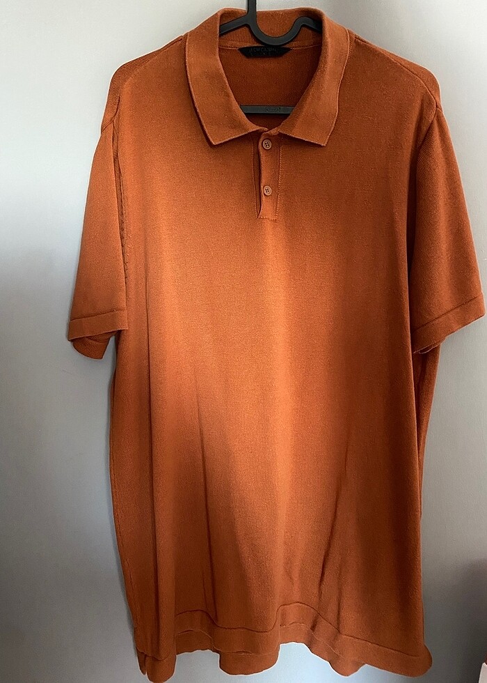 Polo yaka Tshirt hasarı yok. Kiremit rengine dönük bir rengi var.