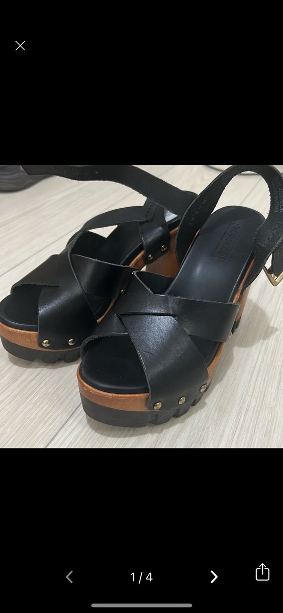 Tokalı kayışlı, siyah platform topuklu sandaletler. Minimalist tasarımlı ve kauçuk malzemeden üretilmiştir.