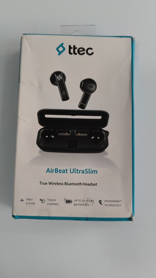 Ttec AirBeat UltraSlim, dokunmatik kontrol ve 10 saate kadar pil ömrü sunan gerçek kablosuz Bluetooth kulaklıktır. Sadece 0,77 cm kalınlığındadır.