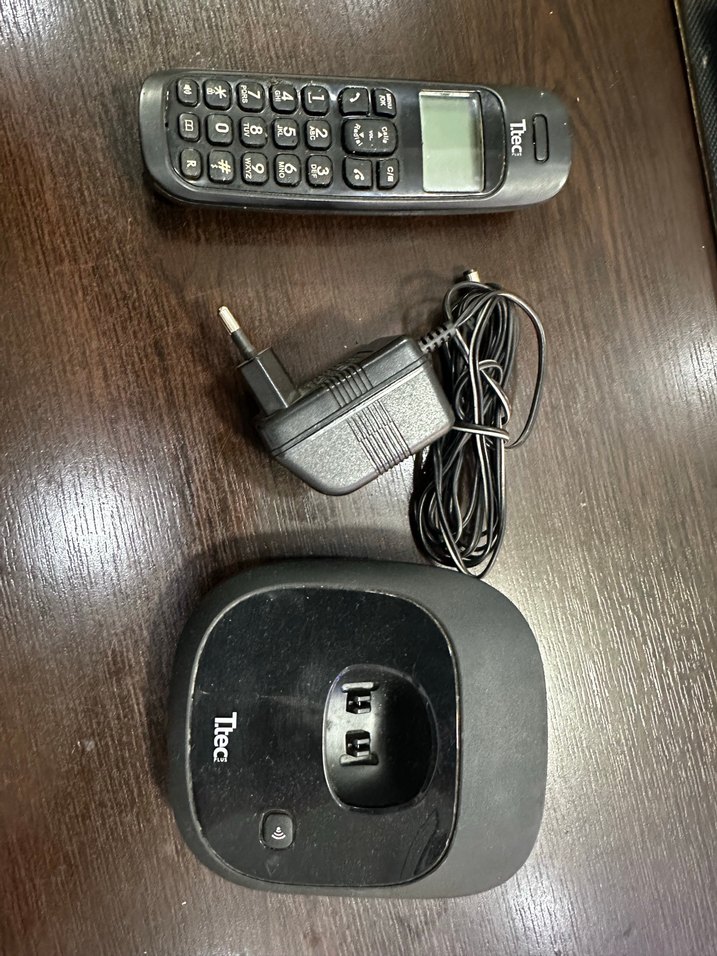 Ttec marka siyah kablosuz telefon seti; ahize, şarj ünitesi ve adaptörden oluşur. Ahizede basit tuş takımı ve küçük ekran bulunur.