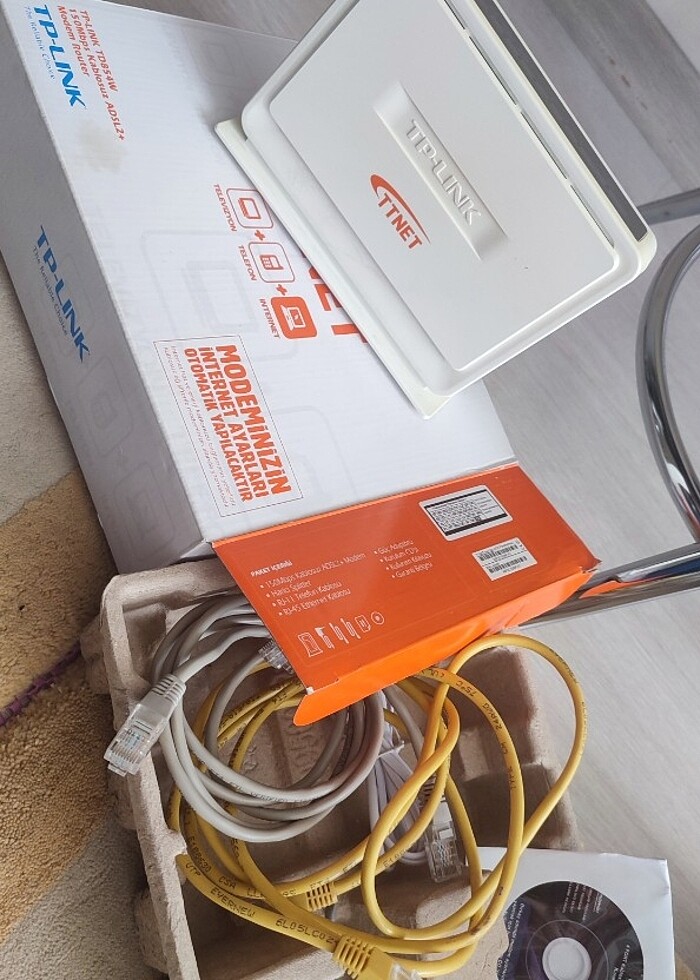 TTnet modem Tp-Link ürünün parçaları mevcut herhangi bir sıkıntısi yok. Sadece modemin bazı yerlerinde sararma var.