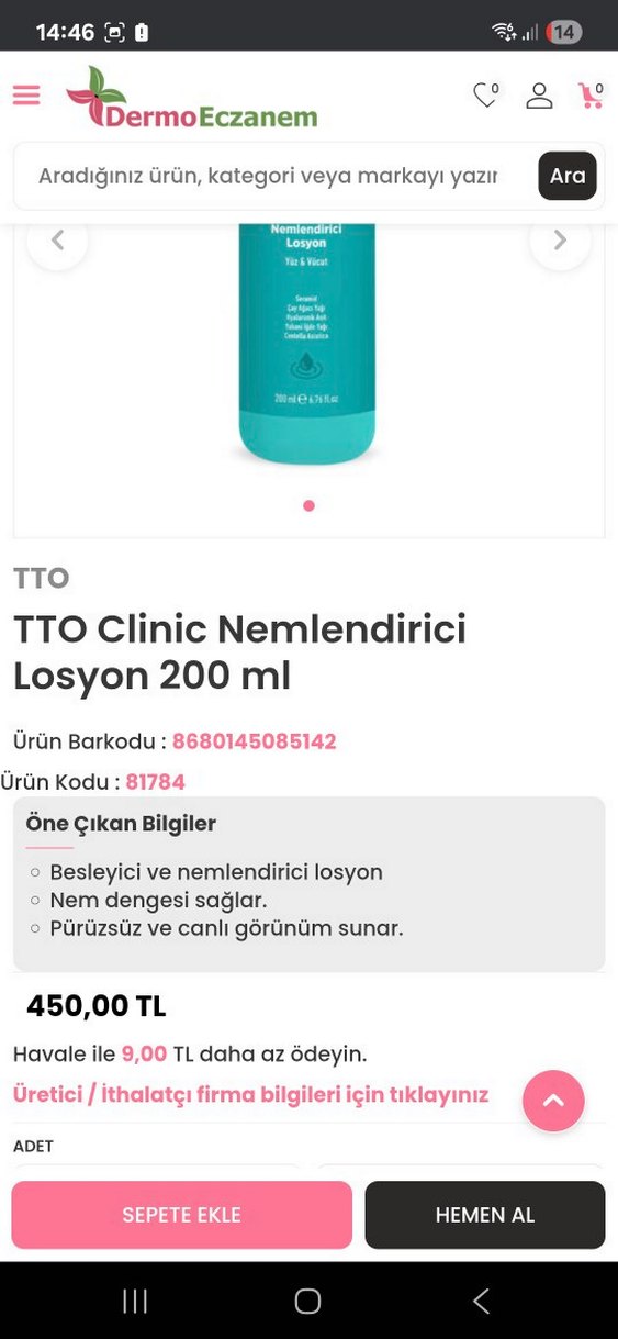 TTO Clinic nemlendirici losyon, yüz ve vücut için seramid, centella asiatica, hyaluronik asit ve yabani iğde yağı içerir, cildi nemlendirir ve yatıştırır. NEREDEYSE HİÇ KULLANMADIM.