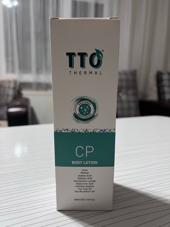 TTO Vücut Losyonu CP 200 ml – Pürüzsüzleştirici, Nemlendirici ve Cilt Yenileyici Bakım Losyonu TTO Thermal Nemlendirici Vücut Losyonu CP, Salisilik Asit ve Azelaik Asit içeren güçlü formülüyle cilt yüzeyindeki ölü hücreleri nazikçe arındırır, cilde pürüzsüz ve canlı bir görünüm kazandırır. Çay Ağacı Yağı, Yabani İğde Yağı, Centella Asiatica Ekstresi ve Hyaluronik Asit kombinasyonu, cildin nem dengesini korurken elastikiyetini artırır ve daha sıkı bir görünüm sağlar. Düzenli kullanımda Keratosis Pilaris (tavuk derisi görünümü), batık ve kuru cilt problemlerine karşı etkili bir bakım sunar. SKT: 11/27 Sıfır üründür, açılmamış kutusunda gönderilecektir.