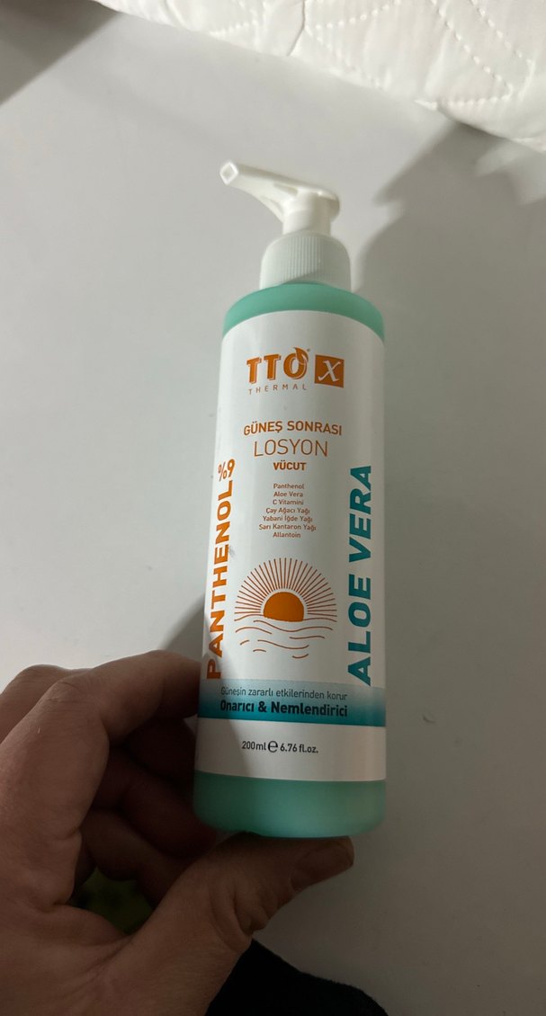 TTOX aloe vera içeren vücut losyonu, panthenol, C ve E vitamini ile güneş sonrası cildi yatıştırır ve nemlendirir. Doğal yağlar ve allantoin içerir.