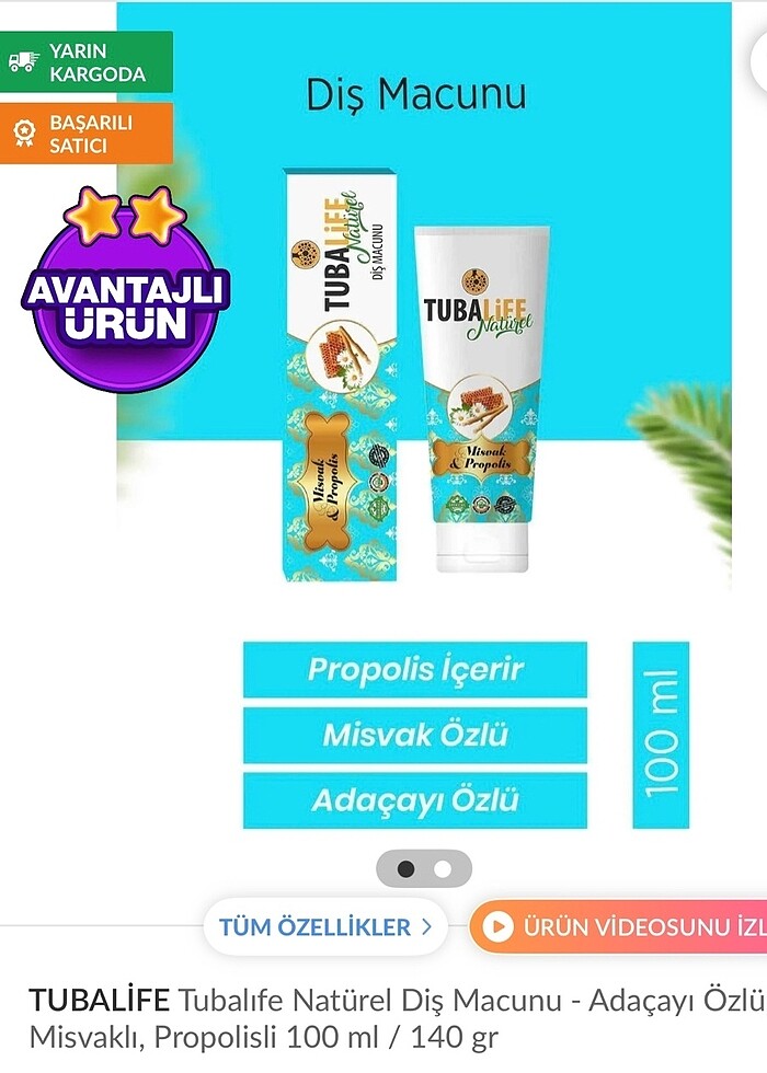 TUBALIFE PROPOLİSLİ MİSVAK ÖZLÜ DİŞ MACUNU