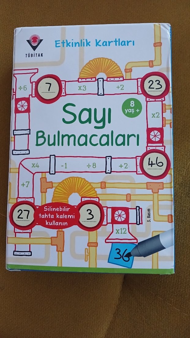 TÜBİTAK etkinlik kartları, 8 yaş ve üzeri için sayı bulmacaları içerir. Silinebilir tahta ve kalemle etkileşimli öğrenim sağlar.