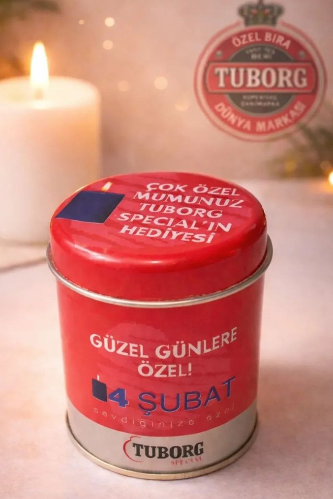 Tuborg sevgililer günü mumu. Teneke kutu içinde Çok az kullanıl