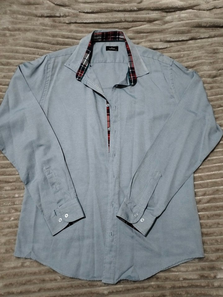 Gri denim kumaştan, düğmeli ve yakalı erkek gömleği. Uzun kollu, normal kesim ve yakasında ekose detay bulunur. Günlük sokak stiline uygun.Hiç giyilmedi, yıkandı, ütülendi sadece. Parlak, gri xl ama l bedene daha uygun. İki kol altı genişliği 56 cm, enseden boyu 79 cm.